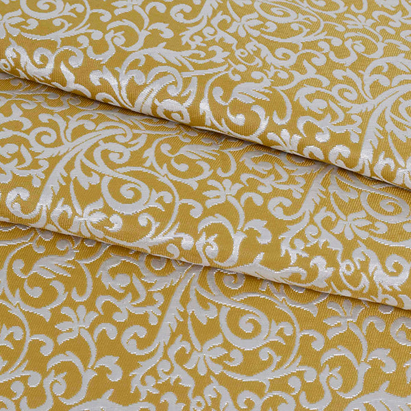 ラメで立体感のあるペイズリー柄を表現し、華やかな色展開が存在感を引き立てるラメジャガード素材です。