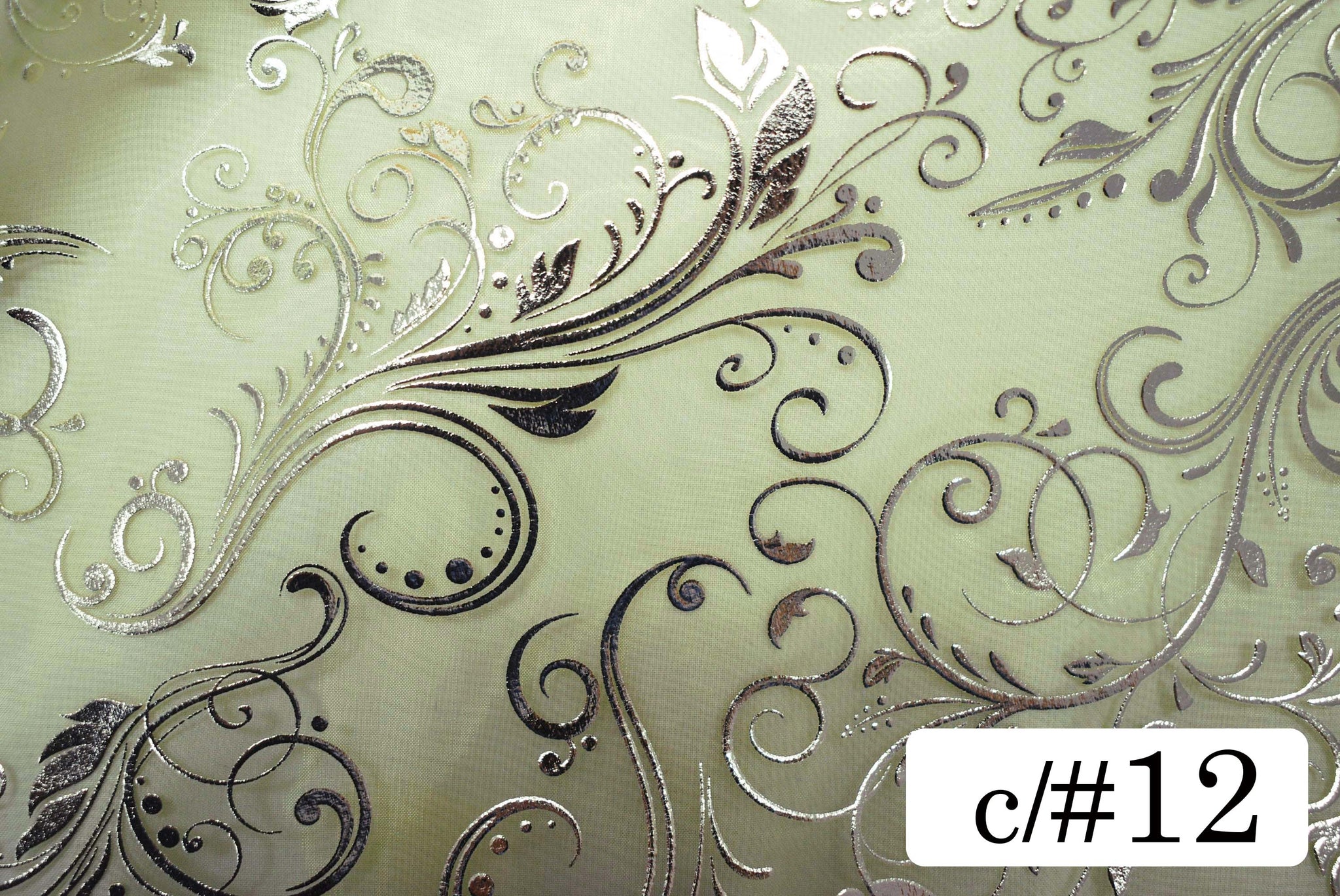 光沢のある薄手のオーガンジーに立体的なアラベスク柄の箔加工を施しました。