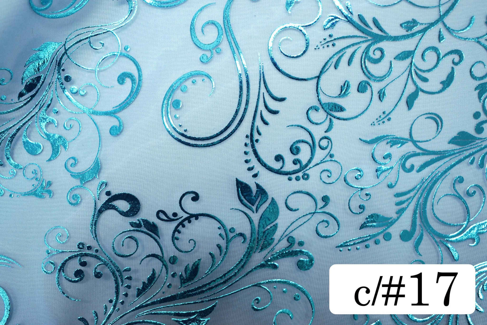 光沢のある薄手のオーガンジーに立体的なアラベスク柄の箔加工を施しました。