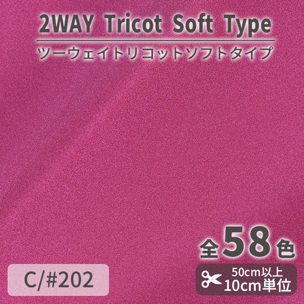 品番489 2WAYトリコットに色数豊富なソフトタイプが加わりました。主に水着やレオタードに使用されます柔らかな風合いを持ち、縦横への伸縮性に富んだ素材です。多くの中間色を取り揃え、様々なシーンでのご利用を実現いたしました。