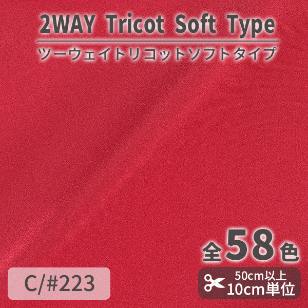 品番489 2WAYトリコットに色数豊富なソフトタイプが加わりました。主に水着やレオタードに使用されます柔らかな風合いを持ち、縦横への伸縮性に富んだ素材です。多くの中間色を取り揃え、様々なシーンでのご利用を実現いたしました。