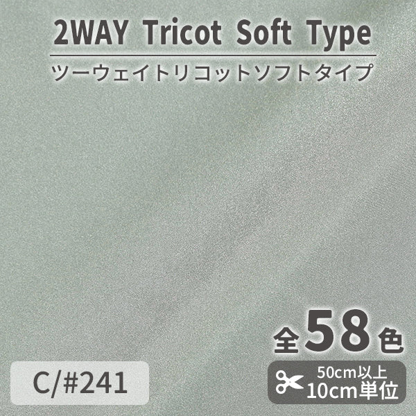 品番489 2WAYトリコットに色数豊富なソフトタイプが加わりました。主に水着やレオタードに使用されます柔らかな風合いを持ち、縦横への伸縮性に富んだ素材です。多くの中間色を取り揃え、様々なシーンでのご利用を実現いたしました。
