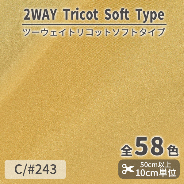 品番489 2WAYトリコットに色数豊富なソフトタイプが加わりました。主に水着やレオタードに使用されます柔らかな風合いを持ち、縦横への伸縮性に富んだ素材です。多くの中間色を取り揃え、様々なシーンでのご利用を実現いたしました。