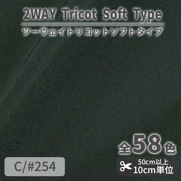 品番489 2WAYトリコットに色数豊富なソフトタイプが加わりました。主に水着やレオタードに使用されます柔らかな風合いを持ち、縦横への伸縮性に富んだ素材です。多くの中間色を取り揃え、様々なシーンでのご利用を実現いたしました。
