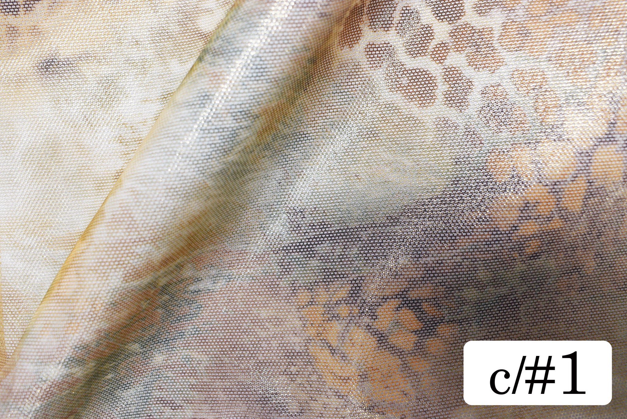 アニマル柄のネット素材にアニマル柄を箔加工を施した素材です。