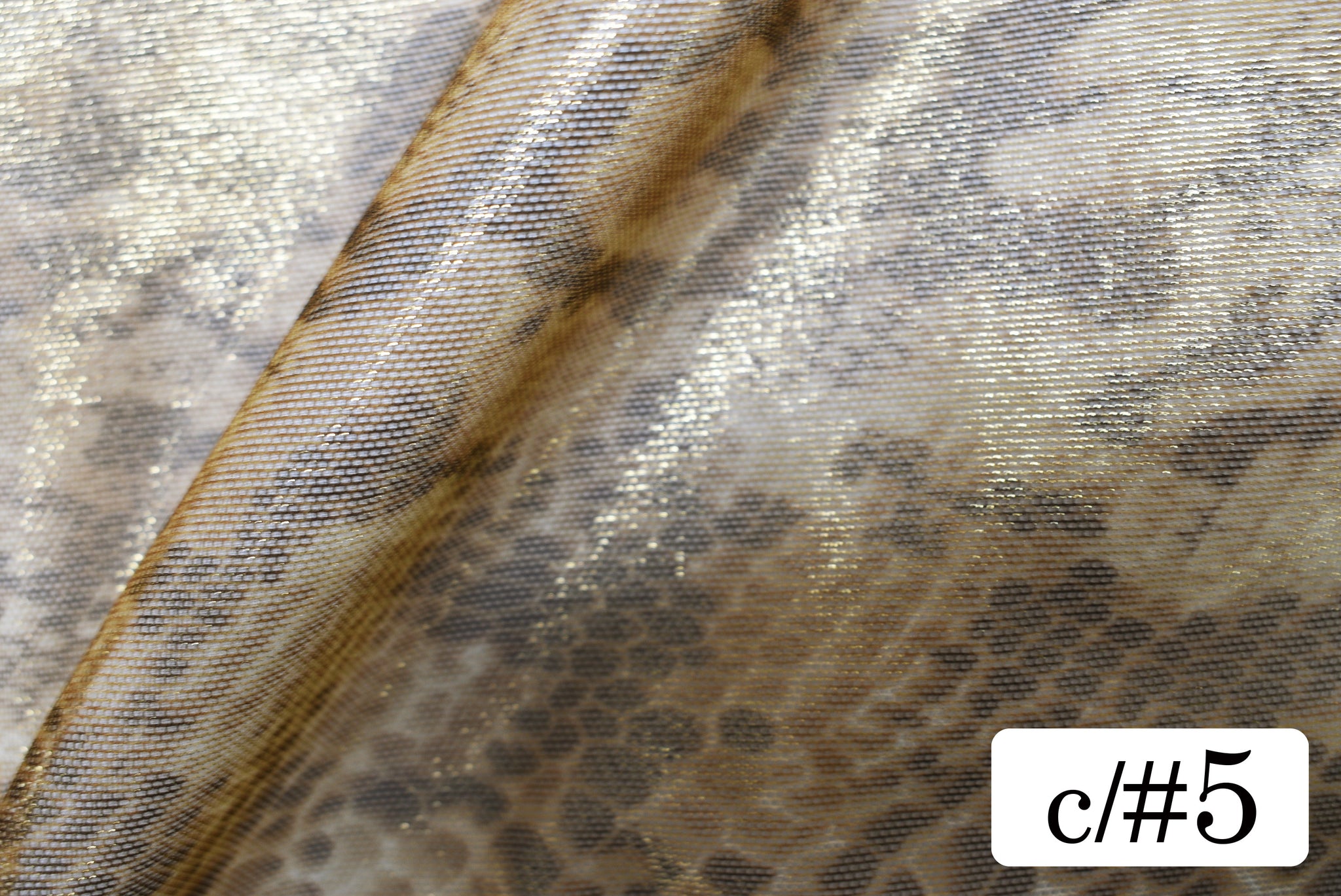 アニマル柄のネット素材にアニマル柄を箔加工を施した素材です。