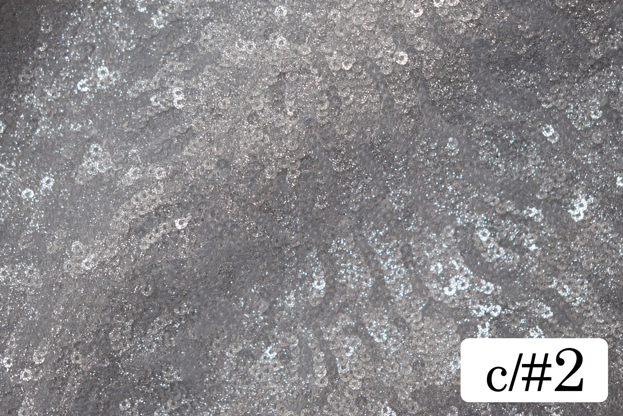 約5㎜のグリッタースパンコールを刺繍した素材です。細やかで繊細な輝きは全面グリッター素材のようにも見えます。